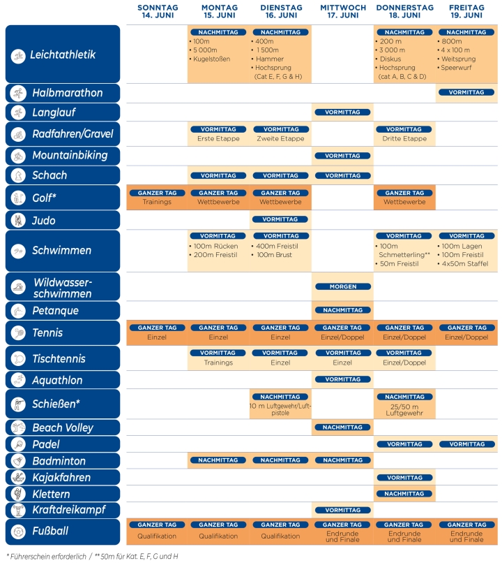 Bitte beachten Sie, dass der Veranstaltungskalender bis zu den Spielen